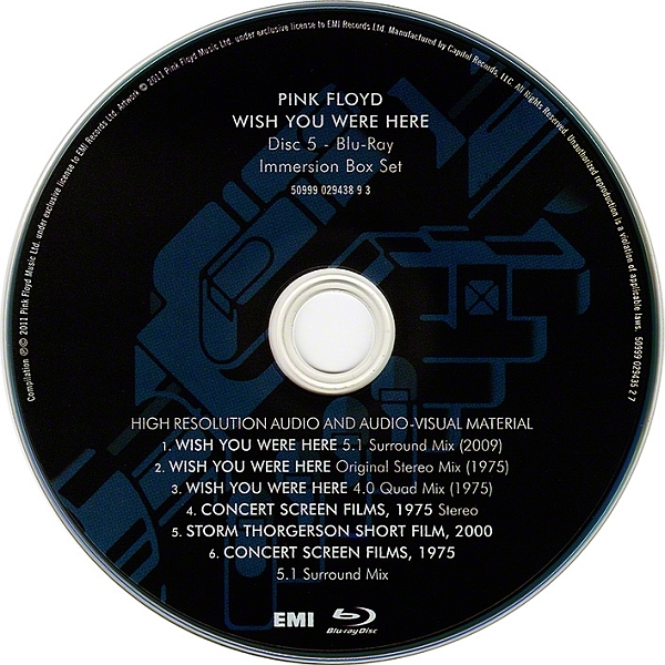 Nekem amúgy az is szilárd meggyőződésem, hogy azért maradt le az Immersion kiadás extrái közül néhány Wish You Were Here demó, mert nem akartak harmadik CD-t a dobozkába tenni. Ugyanis így a korongok összessége is tökéletesen kiadja a szimbolikát. A két CD a föld és az ég, a két DVD a víz és a tűz, míg a külön csomagolt Blu-ray a robotkézfogás vagy az ötödik elem. Ha mindehhez egy plusz CD-t adtak volna, lehet, jó lenne a fülnek, de bukott volna a gondosan őrzött szimbolika. Ami a Wish You Were Here esetében úgy tűnik fontosabb, mint maga a zene.