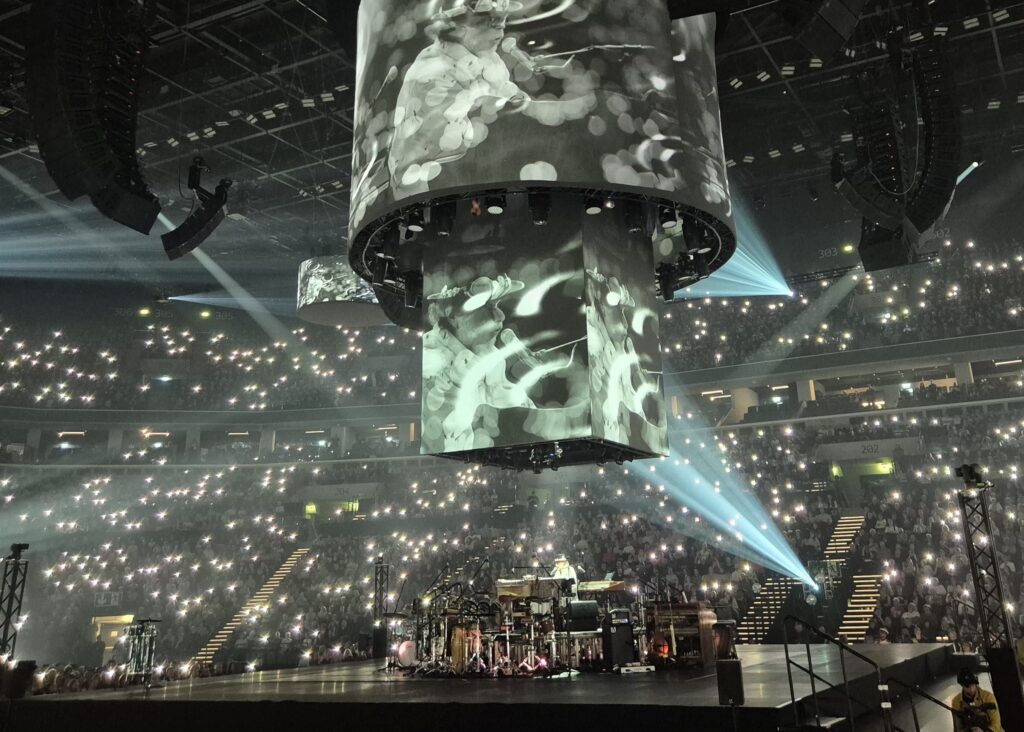 A közönség persze a zenekarral énekelt, még ha kezdetben nem is annyira lelkesen, de ez megbocsátható, hiszen annyira az elején voltunk még az előadásnak, hogy még a fényeket sem kapcsolták le…