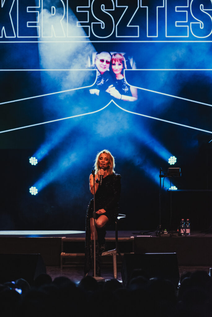 Érkeznek sorra a földi létet maguk mögött hagyó „viaszbábuk” legendás dalaikkal – ezúttal Keresztes Ildi tolmácsolásában: előbb egy hangulatos, leheletfinom, tradicionális dzsessznóta (eredeti előadóként Ella Fitzgeraldra tippelek, de nem biztos), aztán a Janis Joplin Emlékzenekar idejéből, zenekari kíséret nélkül, a capella a Mercedes Benz. Akibe valódi tehetség szorult, nos, itt, ennél a dalnál megmutathatja magát pőre valóságában. Ildikó megmutatta. Katartikusan, hátborzongatóan. A gyanútlan hallgató akaratlanul is a kócos fejű, huszonhét évesen jobblétre szenderült amerikai ikont keresi a szemével – hátha mégis ő énekel? A szakmaiságba jobban belemélyedők házi feladatképpen elgondolkodhatnak: miként fér egyetlen torokba az imént említetteken kívül még Edit Piaf, Cserháti Zsuzsa vagy éppen Tina Turner egytől-egyig jellegzetes orgánuma? Méghozzá úgy, hogy közben az előadó egy pillanatra se feledkezzen el magáról, hogy ő Keresztes Ildikó, mint önálló entitás. Hogy önmagát adja. Nos, a választ az érintett adhatja meg…
