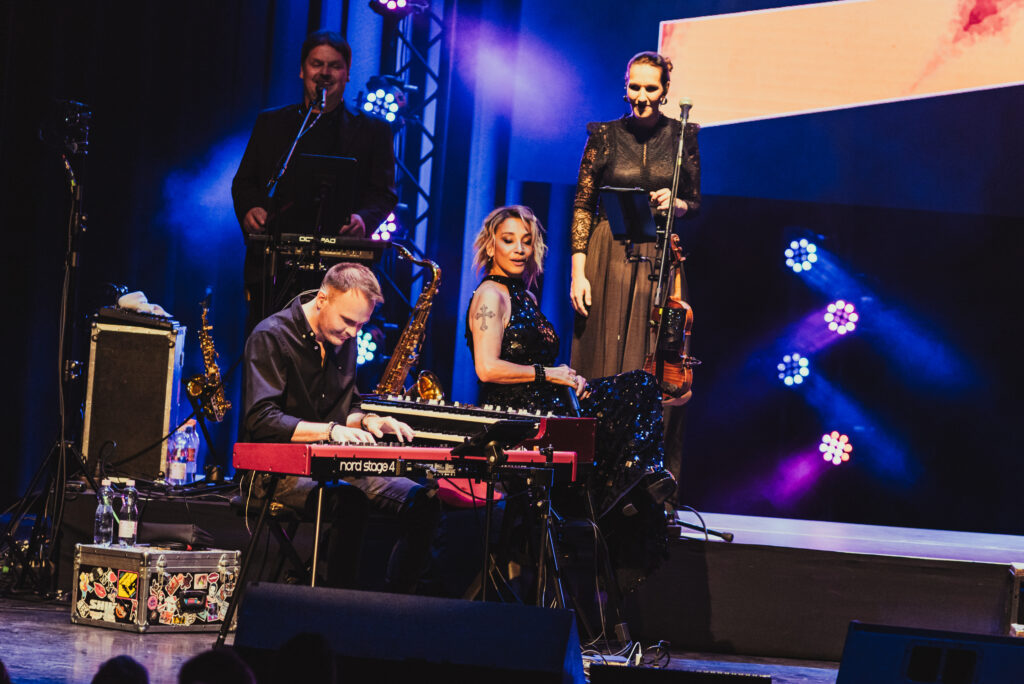Az Emlékek háza képzeletbeli ajtaján belépve, mintha egy panoptikum elevenedne meg – egy nagyon is sokszínű emlékcsarnok tárul elénk. Sokatmondó klippel és az azonos című dallal indítva, hogy aztán láthatóvá, hallhatóvá váljék a remek muzsikusokból verbuvált kísérő zenekar. Akik sokat tesznek az előadás sikeréért: Péterfi Attila basszusgitáros vezetésével remek csapat szerveződött a kiváló torkú énekesnő mögé: Kottler Ákos dobossal együttműködve precíz, pontos alapokat biztosítanak a billentyűs Szabó Tamásnak – akinek külön kiemelendő dinamikus, sokoldalú, minden stílust remekül interpretáló játéka –, valamint a mértéktartó, viszonylag kevés szerephez jutó, ám annál ügyesebb kezű Hámori Máté gitárosnak. Kár, hogy a rövid, de annál velősebb (sajnos „hátul” maradó) gitárszólók a keverés eme hiányossága folytán nem érvényesülhetnek igazán. Amúgy a teljes hangosításra nem lehet panasz, az énekeket is beleértve (a gitárt kivéve) arányosan, tisztán, kivehetően szólal meg minden hangszer. Kiemelendő még a két vokalista: Csányi István, a régi-régi zenésztárs, aki emellett tenor- és alt szaxofonon, továbbá valamilyen nem látható ütőhangszerrel színesíti a megszólalást, valamint Fellegi Anna, aki hegedűn is remekül játszik.